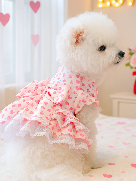 Pinlace Heart-Patterned Bowknot Pet Dress – Cute Dog & Cat Dress with Bow for Parties and Photos