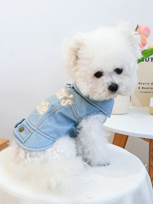 Pinlace Embroidered Denim Pet Jacket – Stylish Dog & Cat Coat for Outdoor and Casual Wear